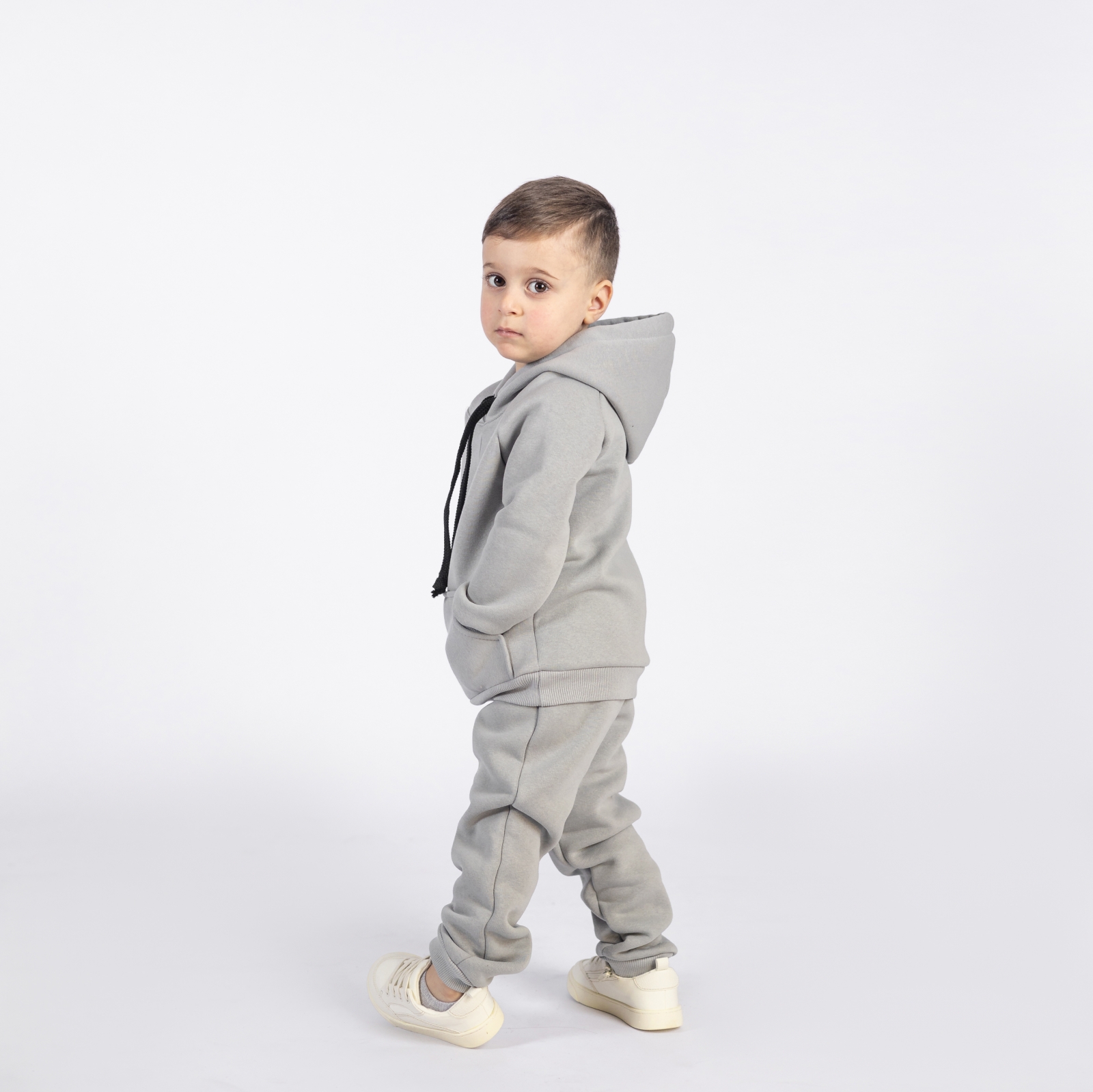 Купить оптом 296-С. Свитшот с капюшоном + Штаны, хлопок 65%, 35% ПЭ, 3-х нитка (начес) серый 146,152,158 в Железноводске